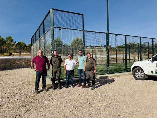 El día de hoy, el delegado provincial de Desarrollo Sostenible, José Ignacio Benito, realizó una visita al municipio de Castillo de Garcimuñoz. Junto al alcalde, Justo López, y varios agentes medioambientales, Benito inspeccionó las recientes instalaciones de mallas de nailon en la pista de pádel local. Estas mallas han sido colocadas con el propósito de reducir la mortalidad de aves por colisiones con las cristaleras de dichas instalaciones.
